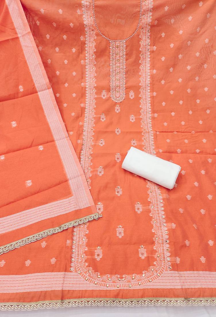 | Product Name | Orange Cotton Silk Embellished Unstitched Dress Material | |