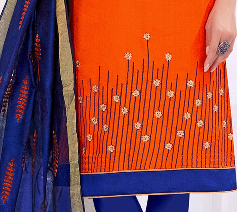 Orange embroidered cotton salwar with dupatta unstitched
