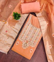 Orange shimmer banarasi woven unstitched dress material