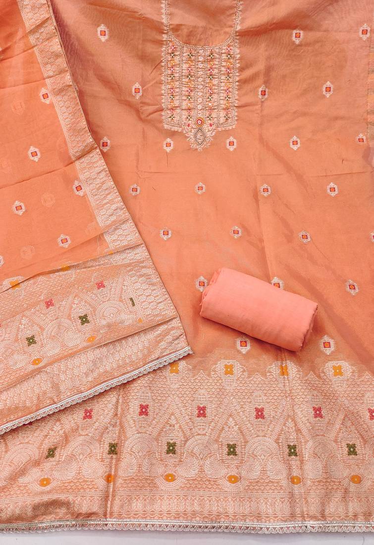 | Product Name | Orange Shimmer Banarasi Woven Unstitched Dress Material | |