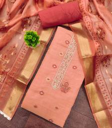 Peach banarasi embellished unstitched dress material