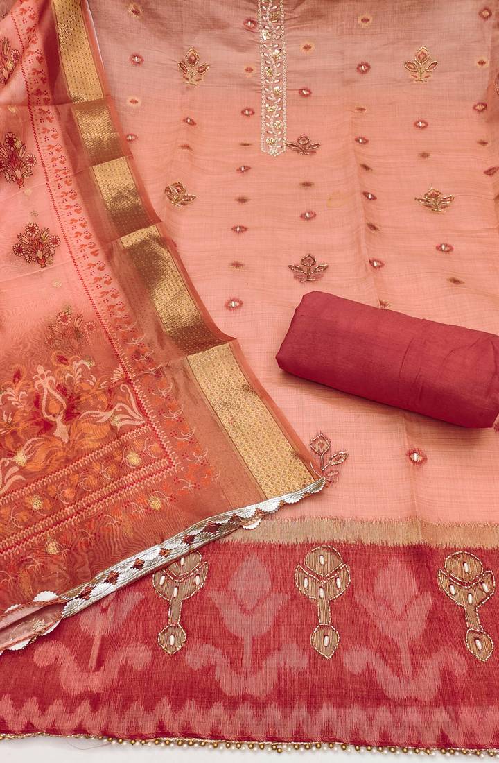 | Product Name | Peach Banarasi Embellished Unstitched Dress Material | |