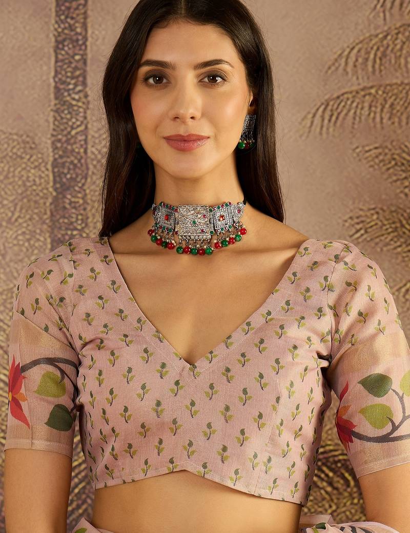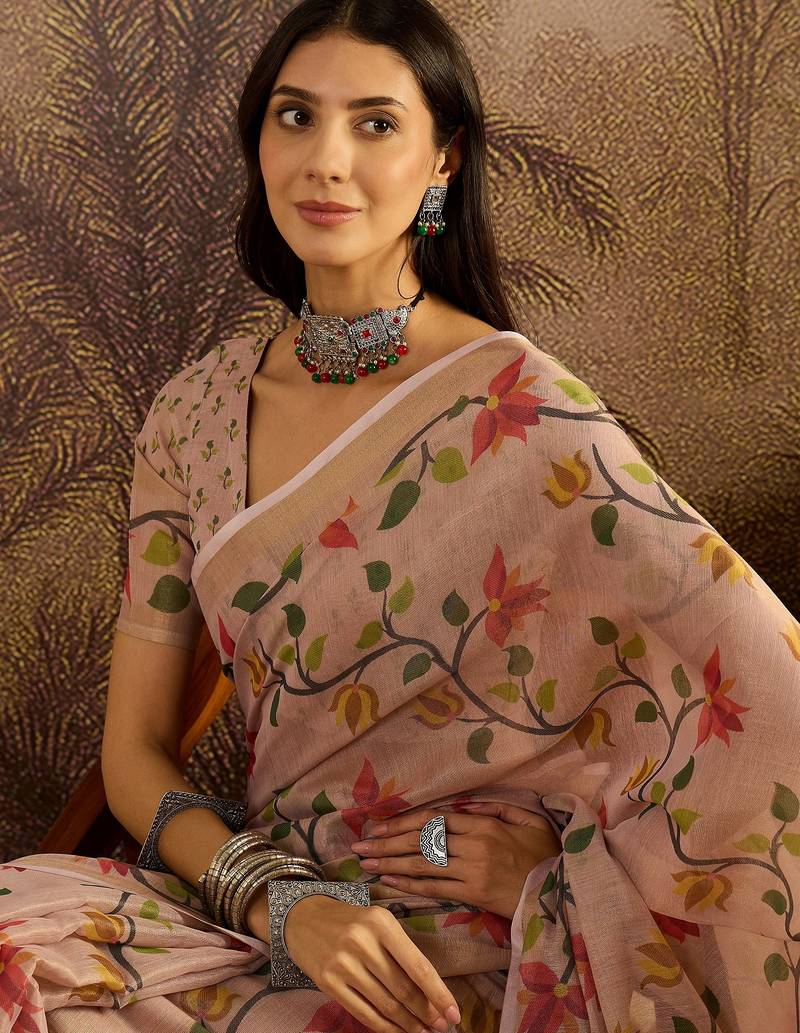 | Product Name | Peach Silk Cotton Printed Saree With Unstitched Blouse Piece | |