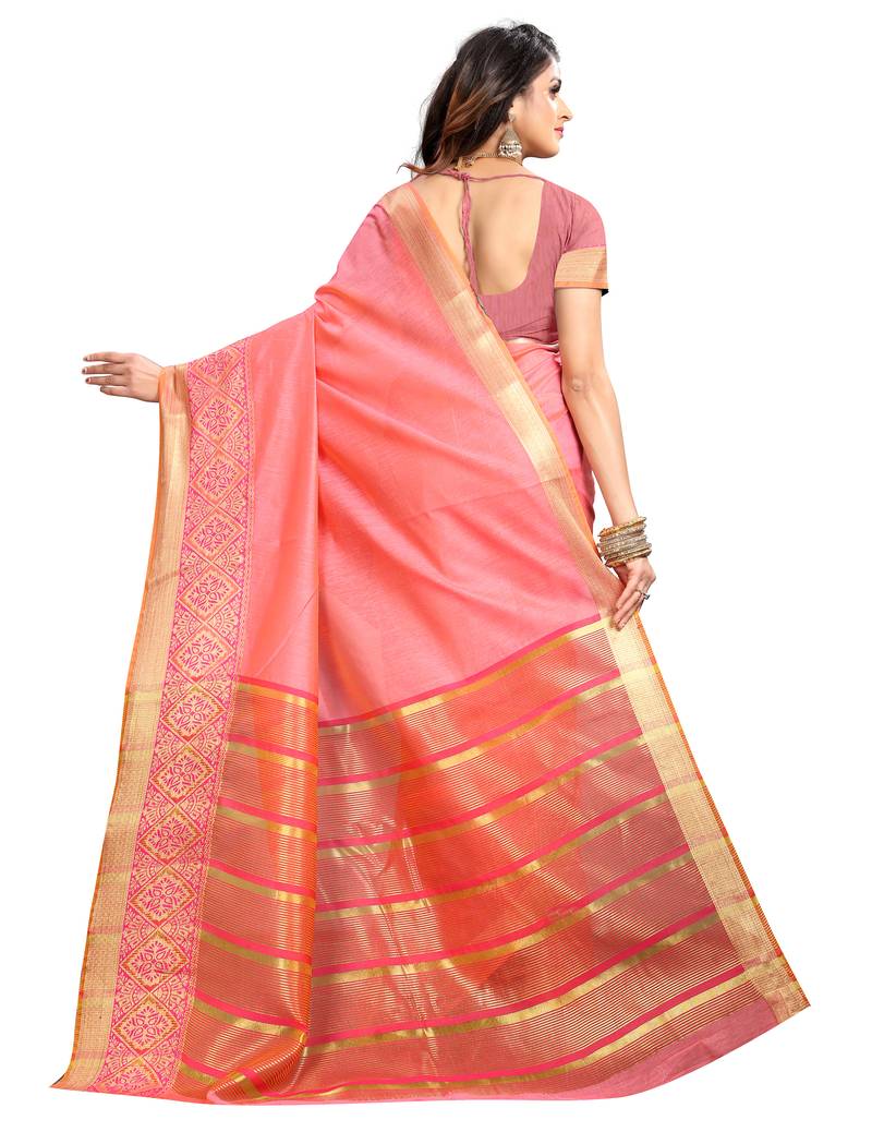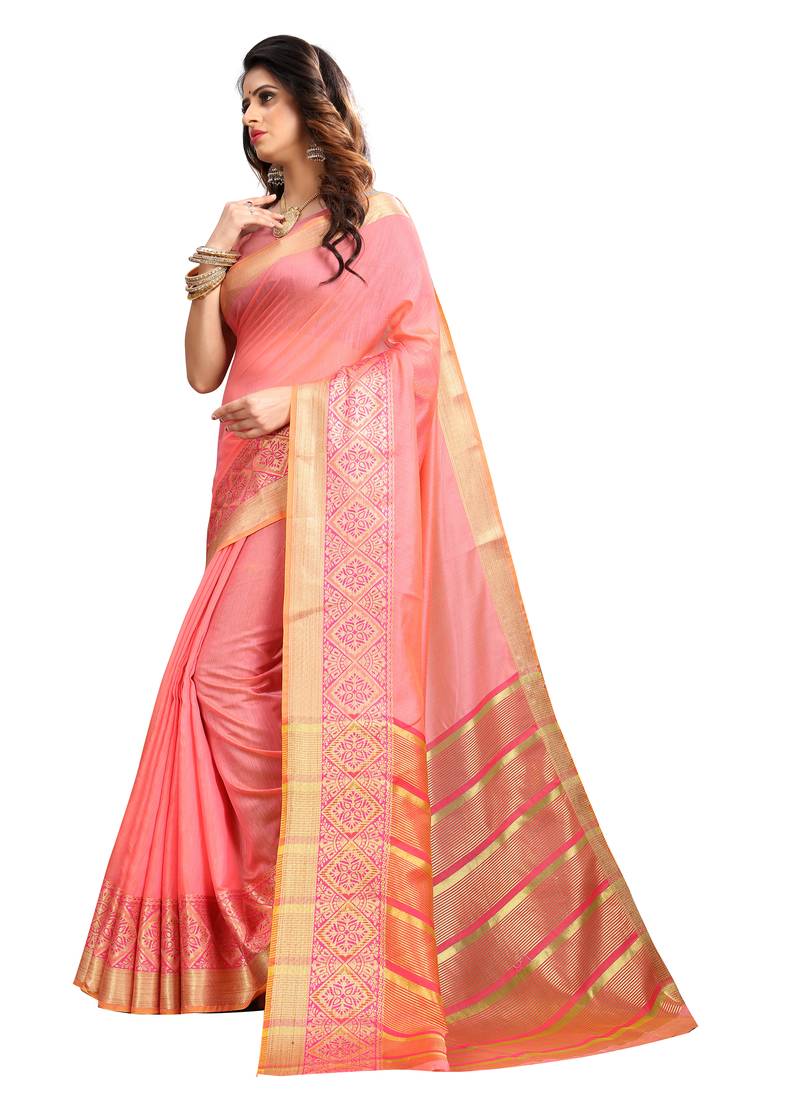 | Product Name | Peach Woven Cotton Silk Saree With Blouse | |