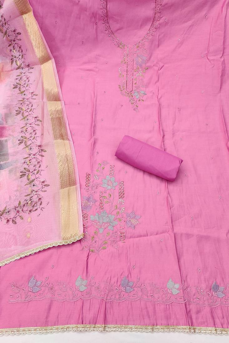 | Product Name | Pink Cotton Silk Embroidered Unstitched Dress Material | |