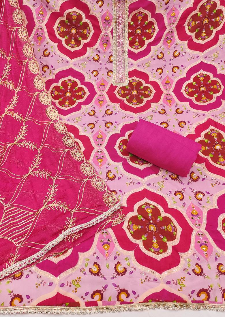 | Product Name | Pink Cotton Silk Printed Unstitched Dress Material | |