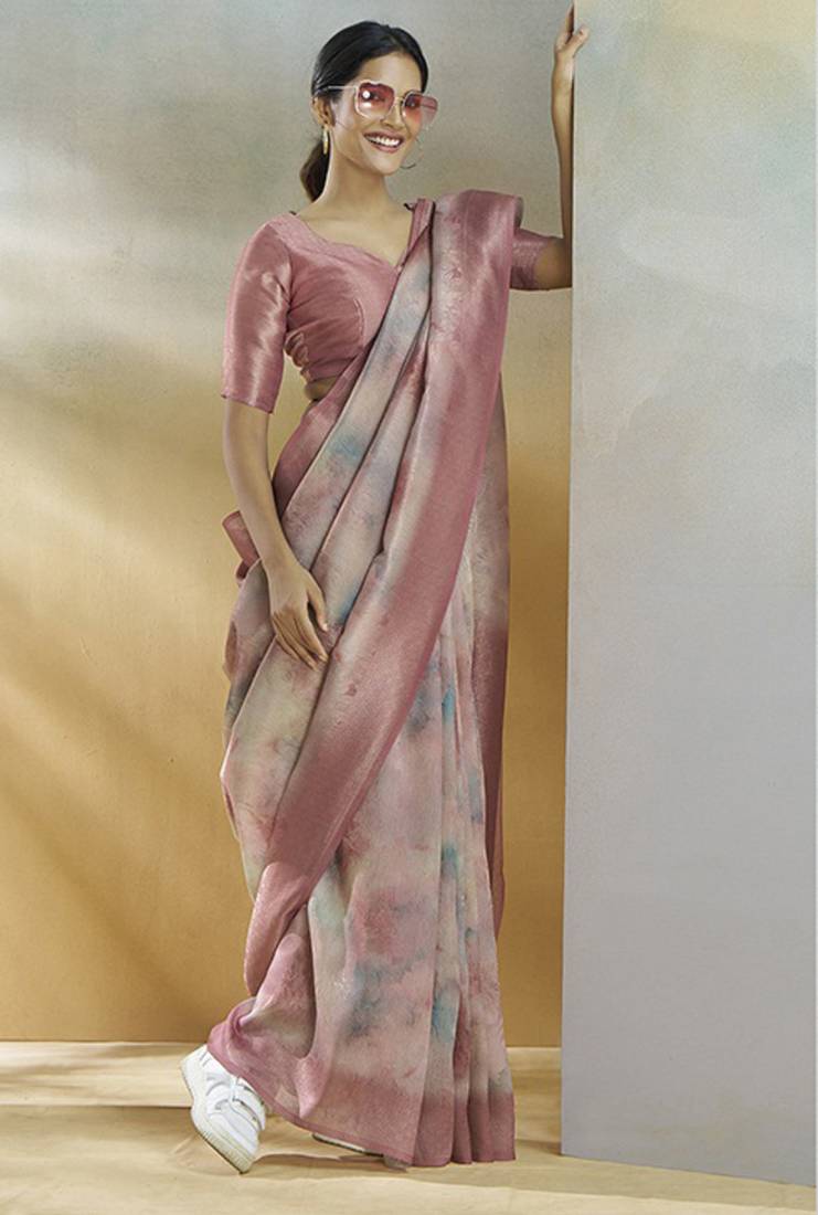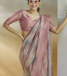 Pink handloom silk blend woven saree with unstitched blouse piece