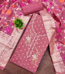 Pink shimmer banarasi embellished unstitched dress material