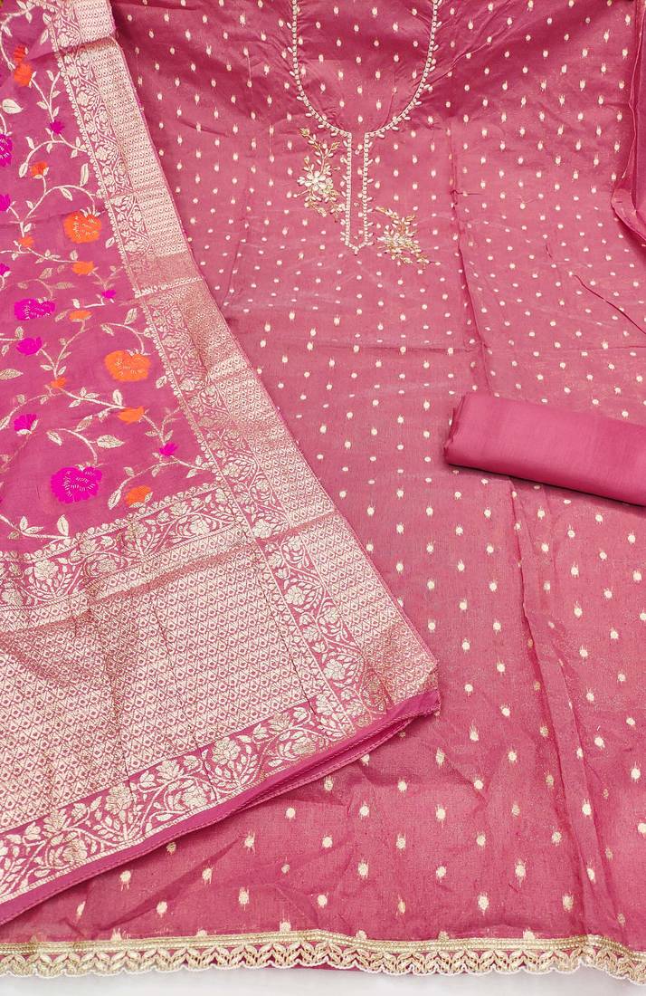 | Product Name | Pink Shimmer Banarasi Embellished Unstitched Dress Material | |