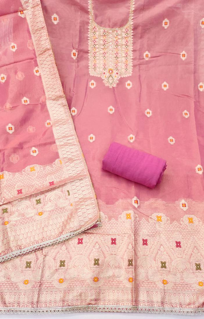 | Product Name | Pink Shimmer Banarasi Woven Unstitched Dress Material | |