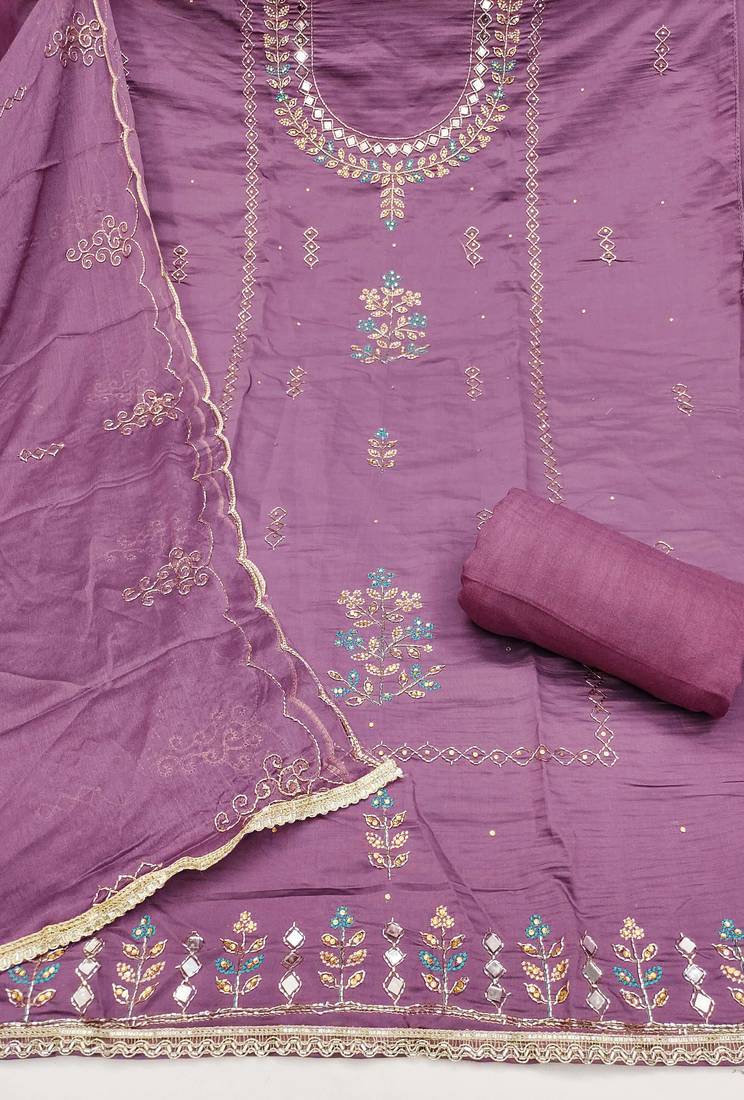 | Product Name | Purple Cotton Silk Embroidered Unstitched Dress Material | |