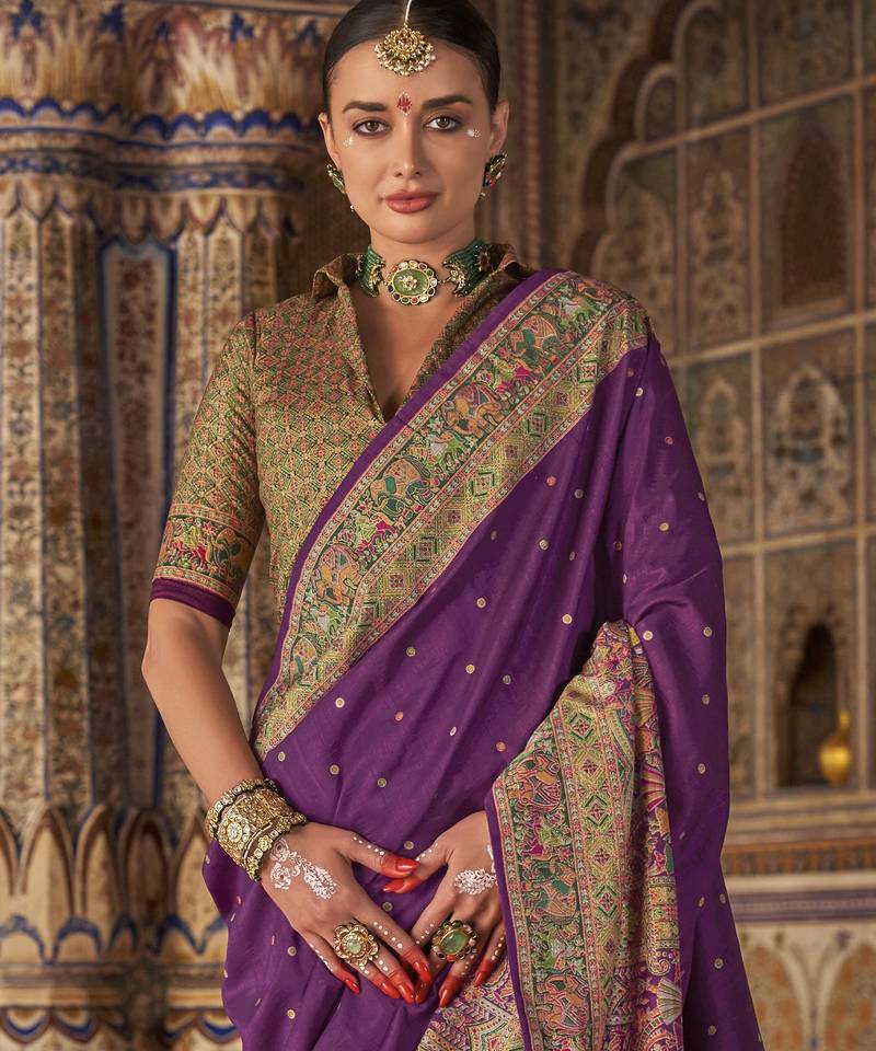 | Product Name | Purple Silk Printed Saree With Unstitched Blouse Piece | |