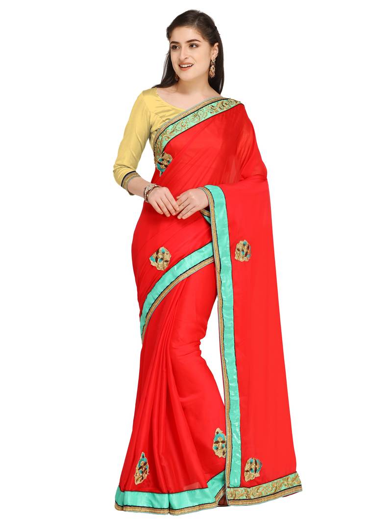 | Product Name | Red Embroidered Chiffon Saree With Blouse | |
