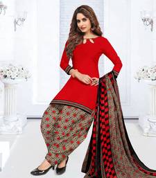 Red printed crepe salwar unstitched