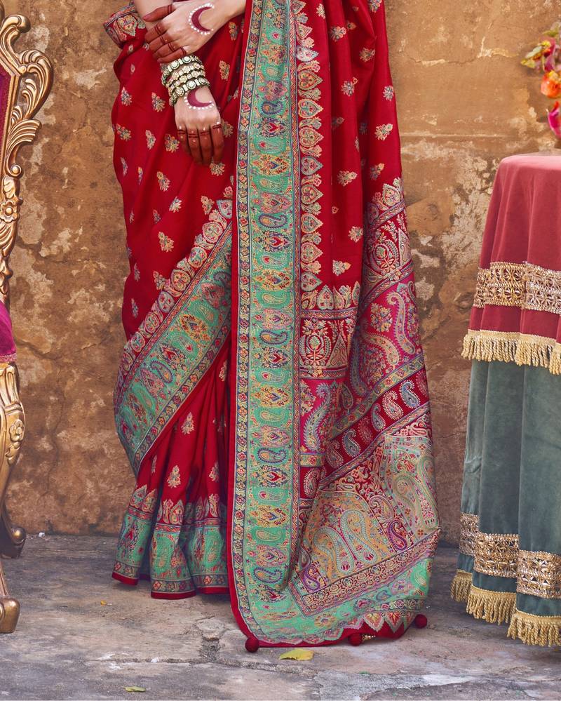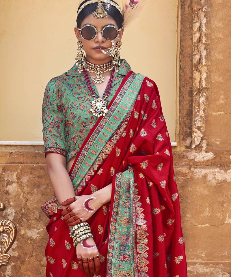 | Product Name | Red Silk Printed Saree With Unstitched Blouse Piece | |