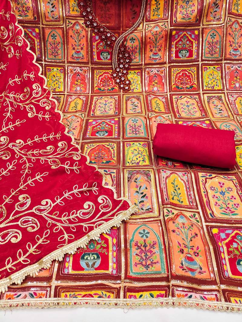 | Product Name | Red Viscose Embellished Unstitched Dress Material | |