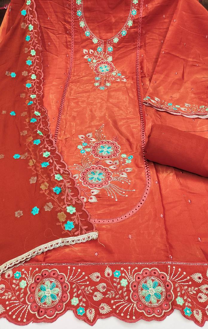 | Product Name | Rust Viscose Embroidered Unstitched Dress Material | |