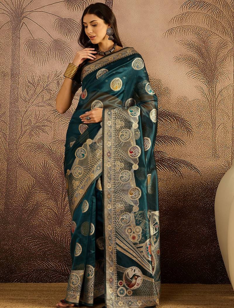 | Product Name | Teal Organza Zari Woven Saree With Unstitched Blouse Piece | |