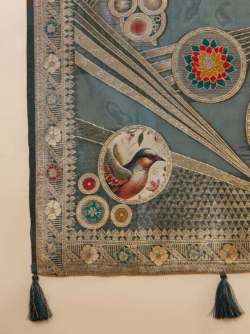 | • | Saree | : | Color- Teal / Fabric- Organza |