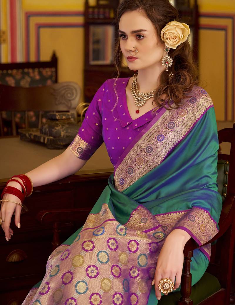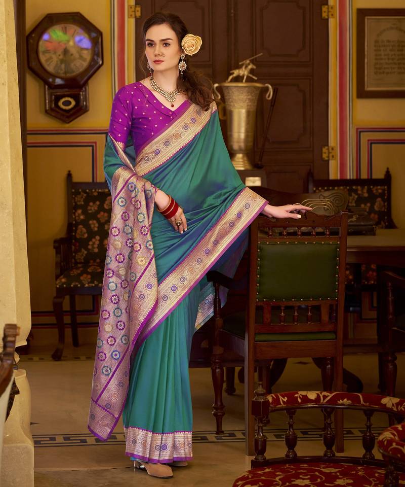 | Product Name | Teal Soft Silk Blend Woven Saree With Unstitched Blouse Piece | |