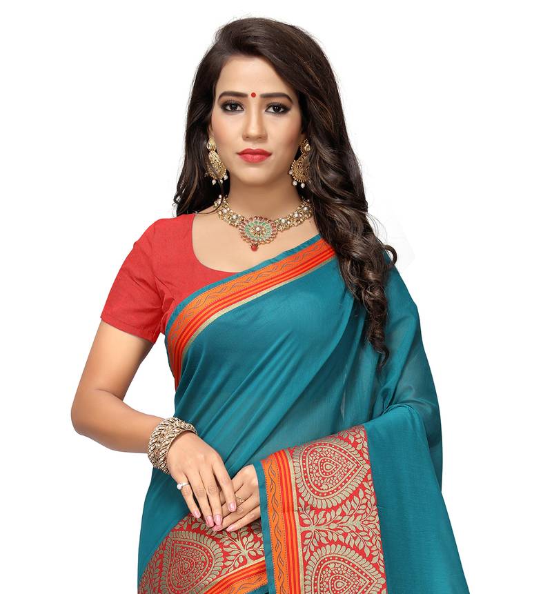 | Product Name | Kimisha Women's Teal Jacquard Cotton Silk Saree With Designer Pallu | |