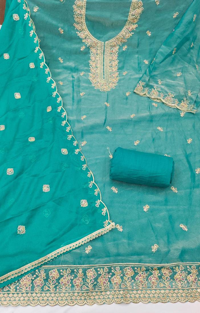 | Product Name | Turquoise Viscose Georgette Embroidered Unstitched Dress Material | |