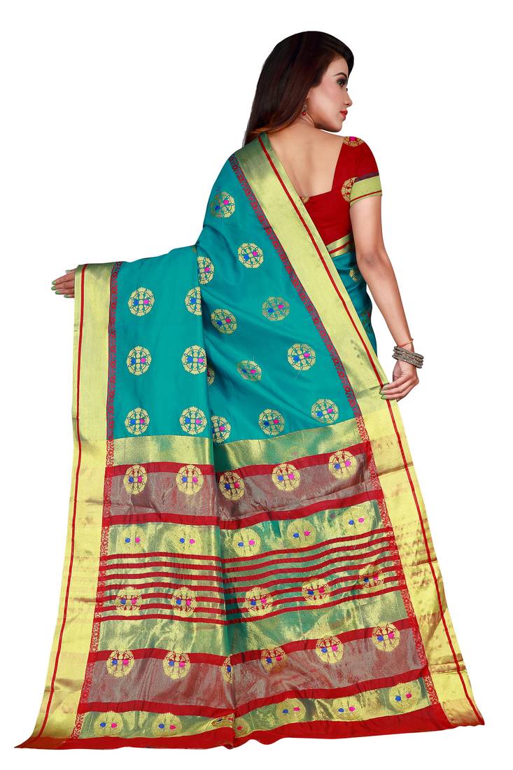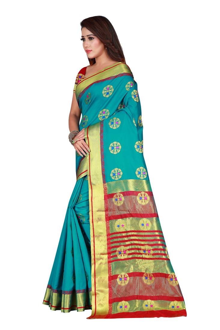 | Product Name | Turquoise Woven Cotton Silk Saree With Blouse | |