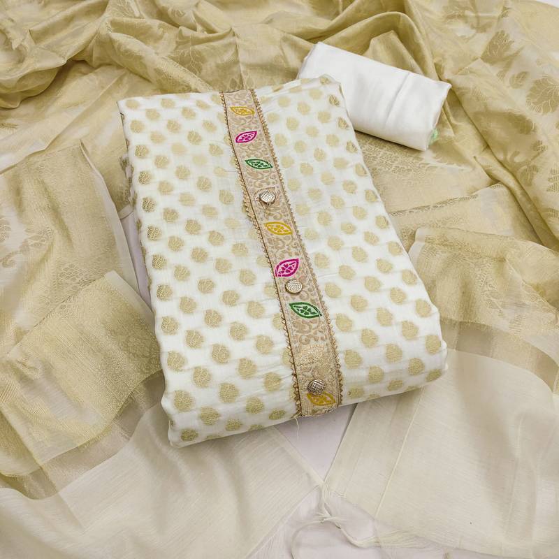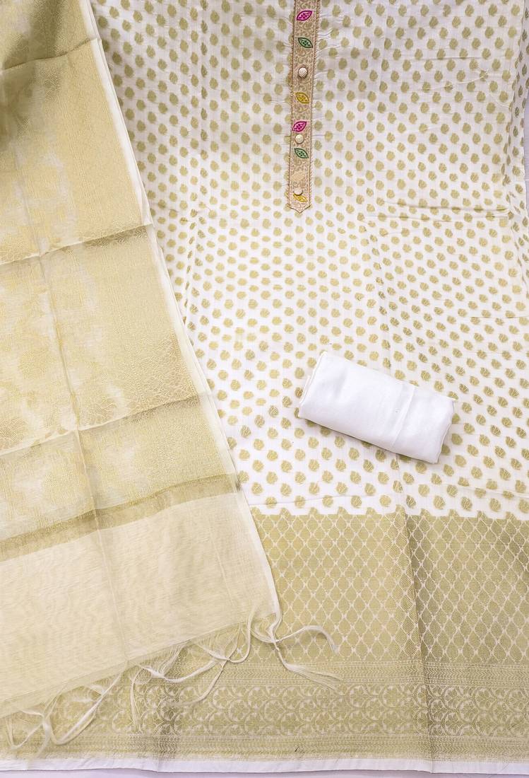 | Product Name | White Banarasi Woven Unstitched Dress Material | |
