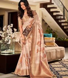 Women's beige handloom silk saree with unstitched silk blouse piece