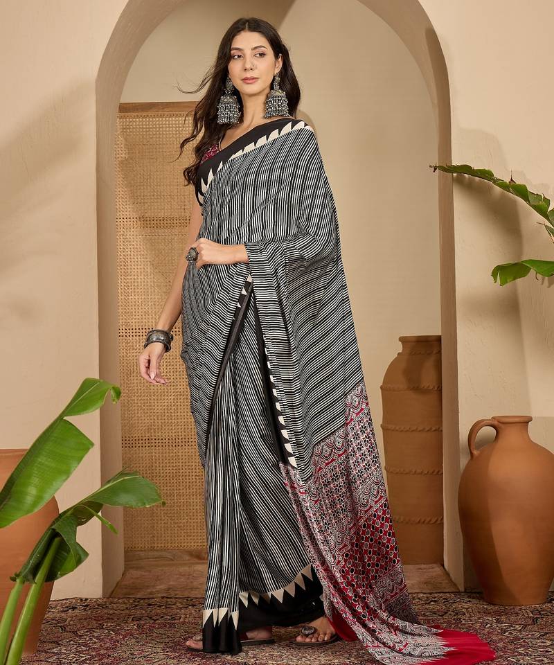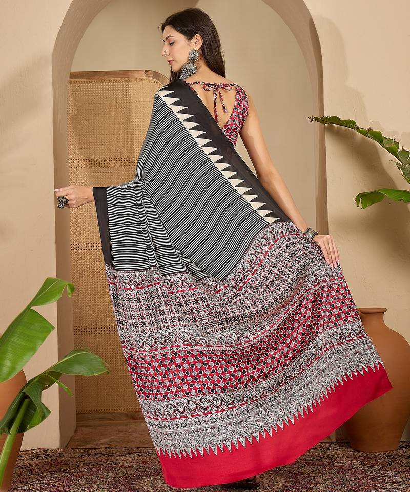 | Product Name | Women's Black Satin Printed Saree With Unstitched Blouse Piece | |
