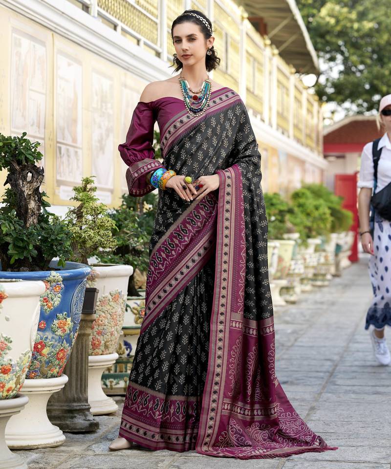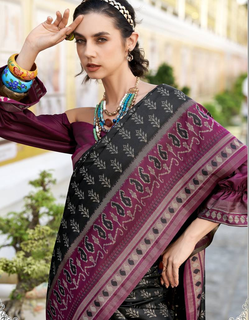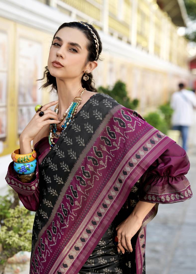 Product Name | Black Soft Ikat Printed Silk Blend Saree With Unstitched Blouse Piece | |