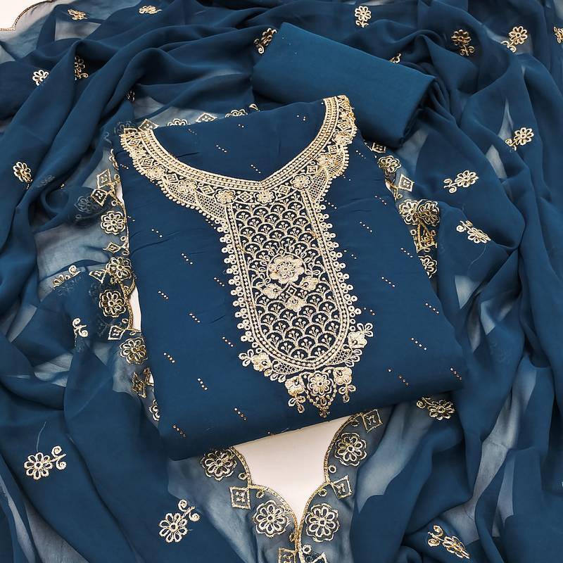 | Product Name | Women's Blue Georgette Embroidered Unstitched Dress Material | |