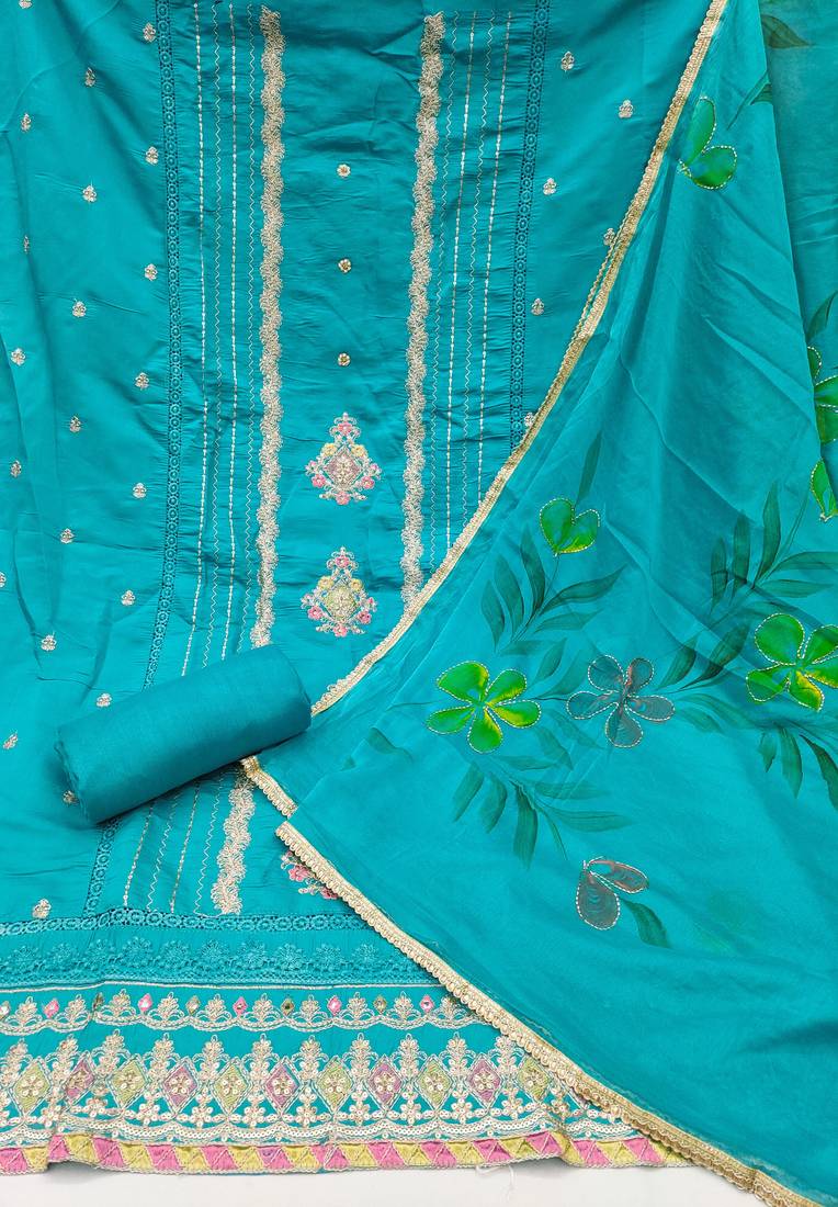 Product Name | Women's Blue Premium Roman Cotton Embroidered Unstitched Dress Material | |