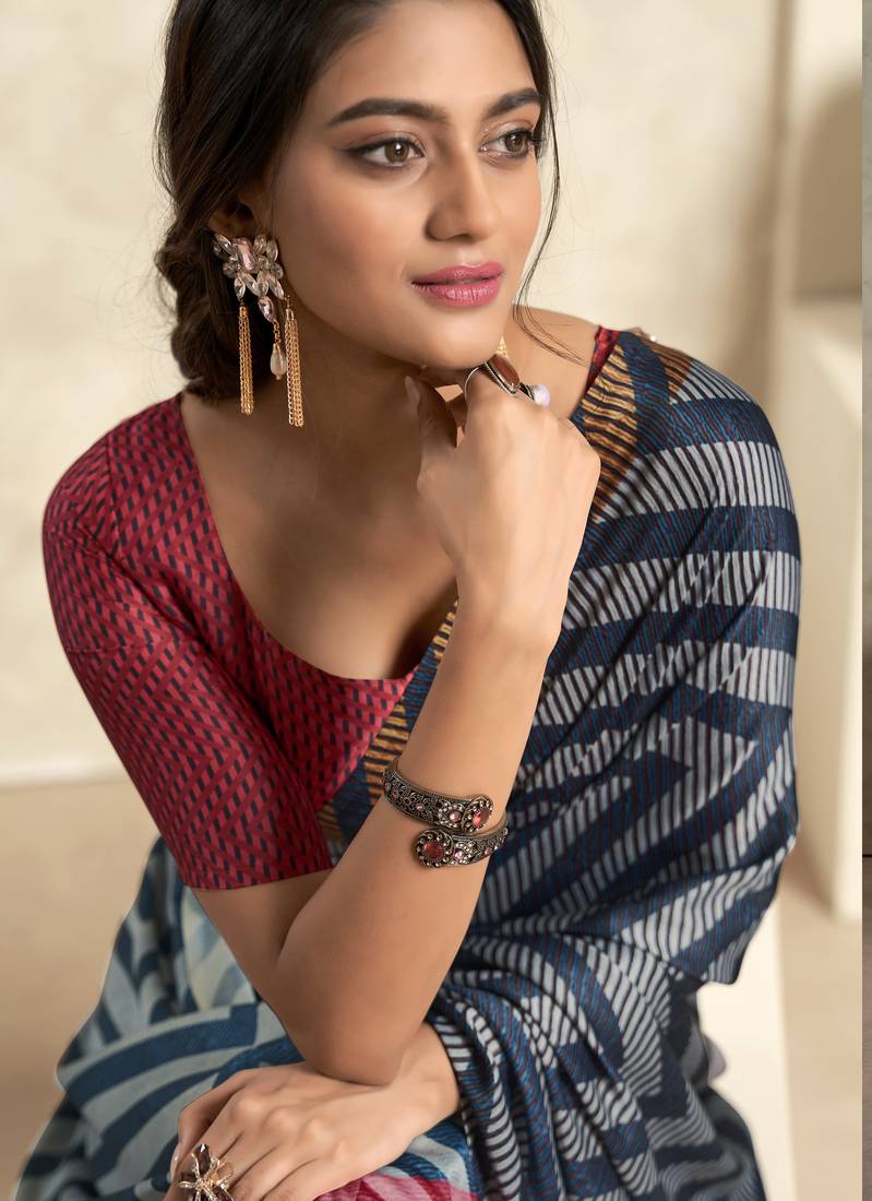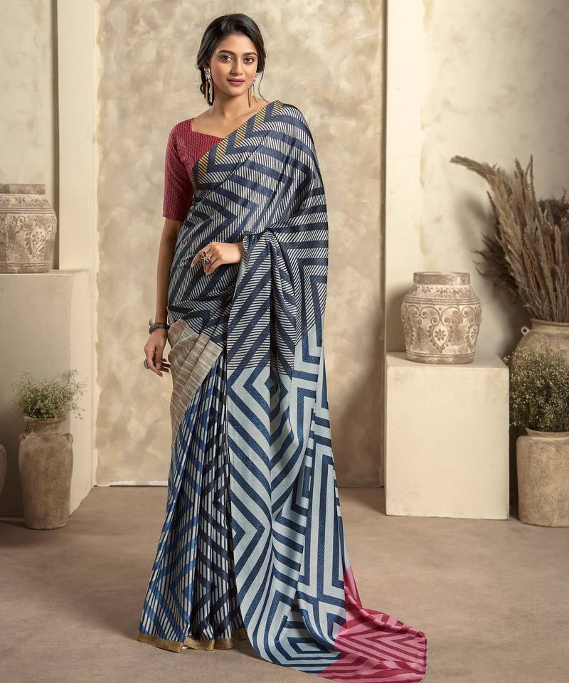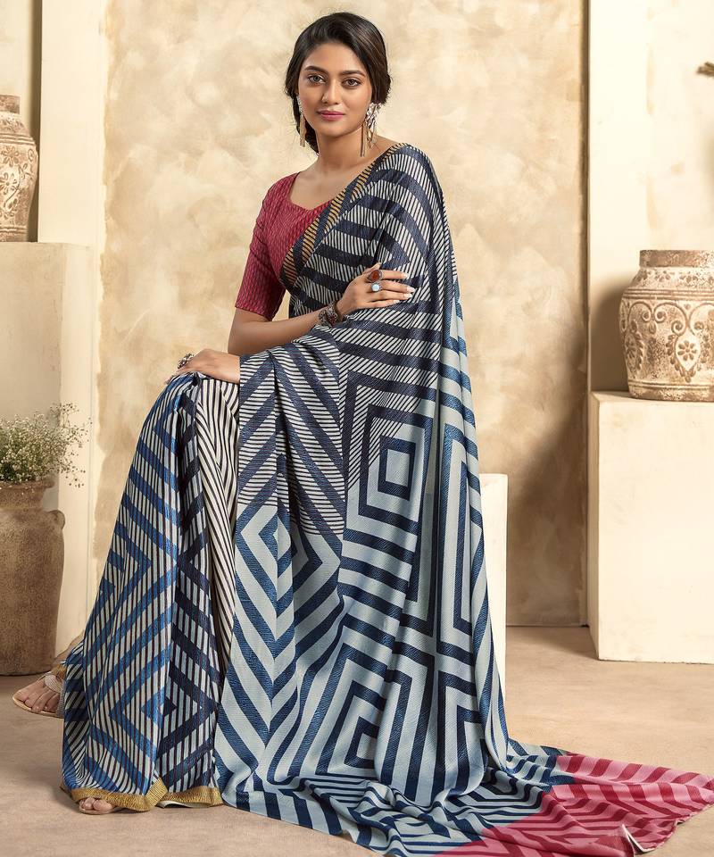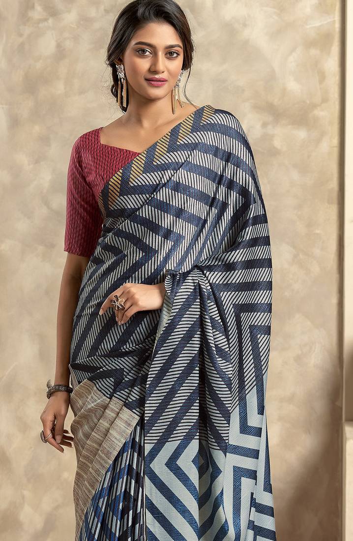 Product Name | Women's Blue Satin Crepe Printed Saree With Unstitched Silk Blouse Piece | |