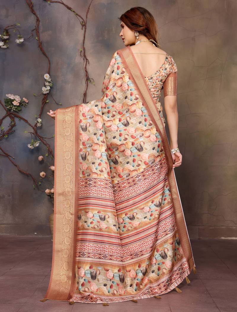 | Product Name | Women's Cream Dola Silk Blend Digital Print Saree With Unstitched Blouse Piece | |