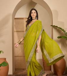 | Product Name | Women's Green Georgette Bandhni Saree With Unstitched Blouse Piece | |