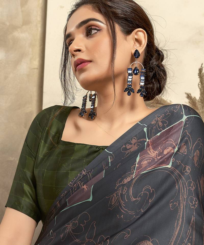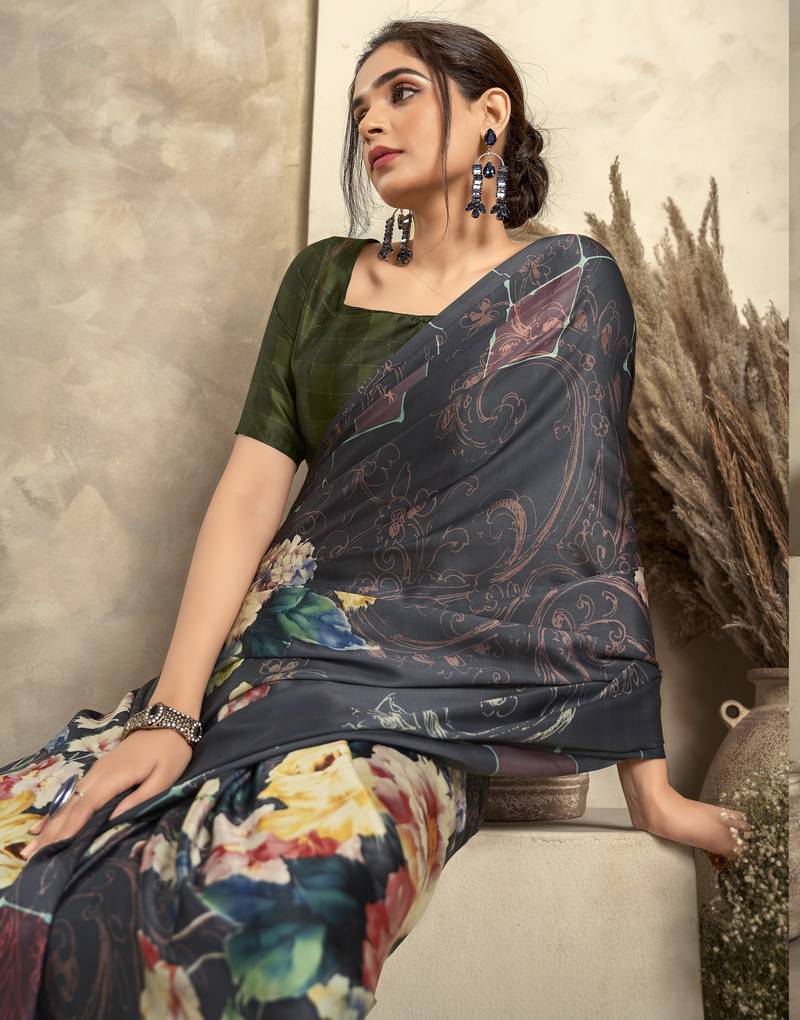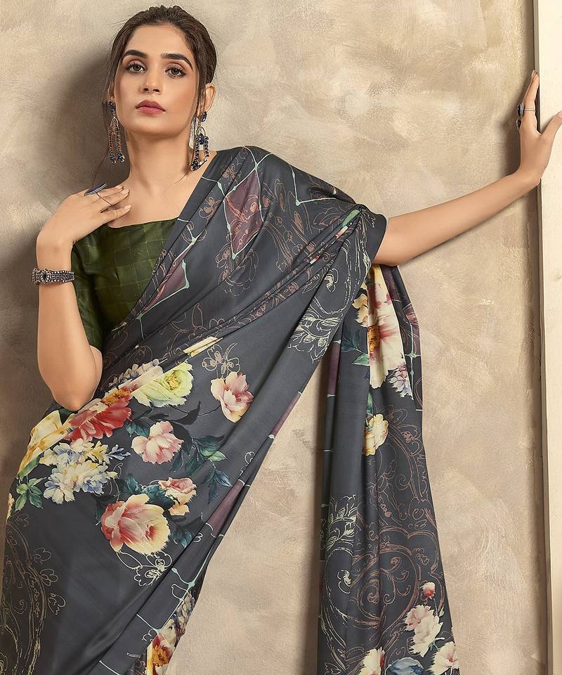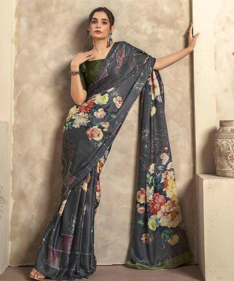 Product Name | Women's Grey Satin Crepe Printed Saree With Unstitched Silk Blouse Piece | |