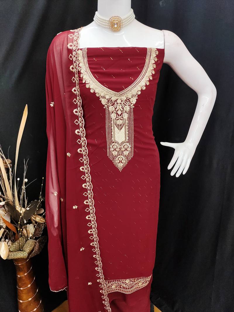 | Product Name | Women's Maroon Georgette Embroidered Unstitched Dress Material | |