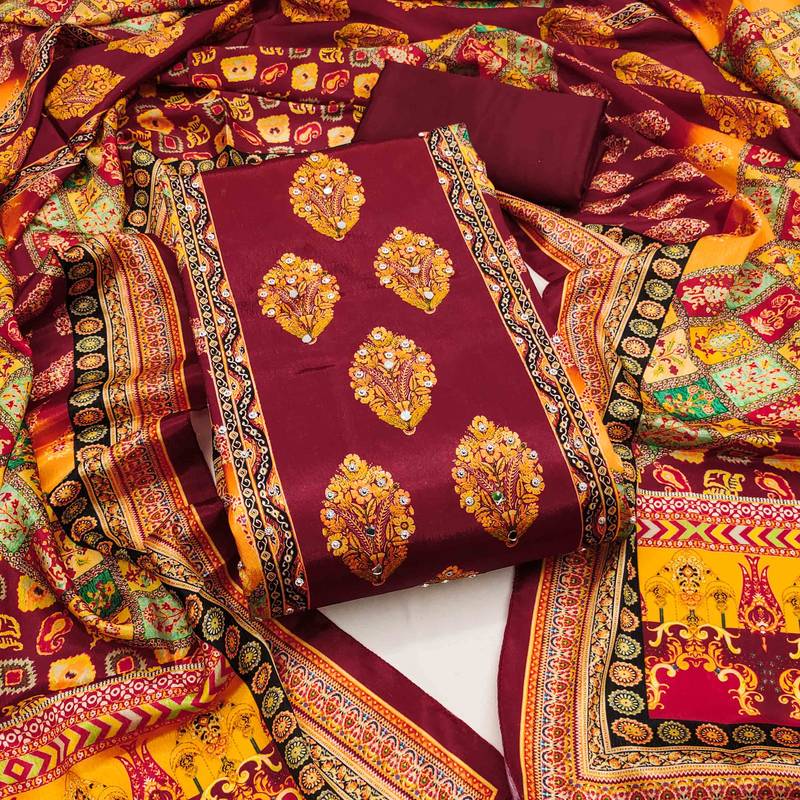 | Product Name | Women's Maroon Silk Chiffon Printed Unstitched Dress Material | |