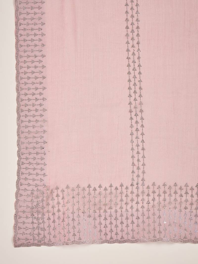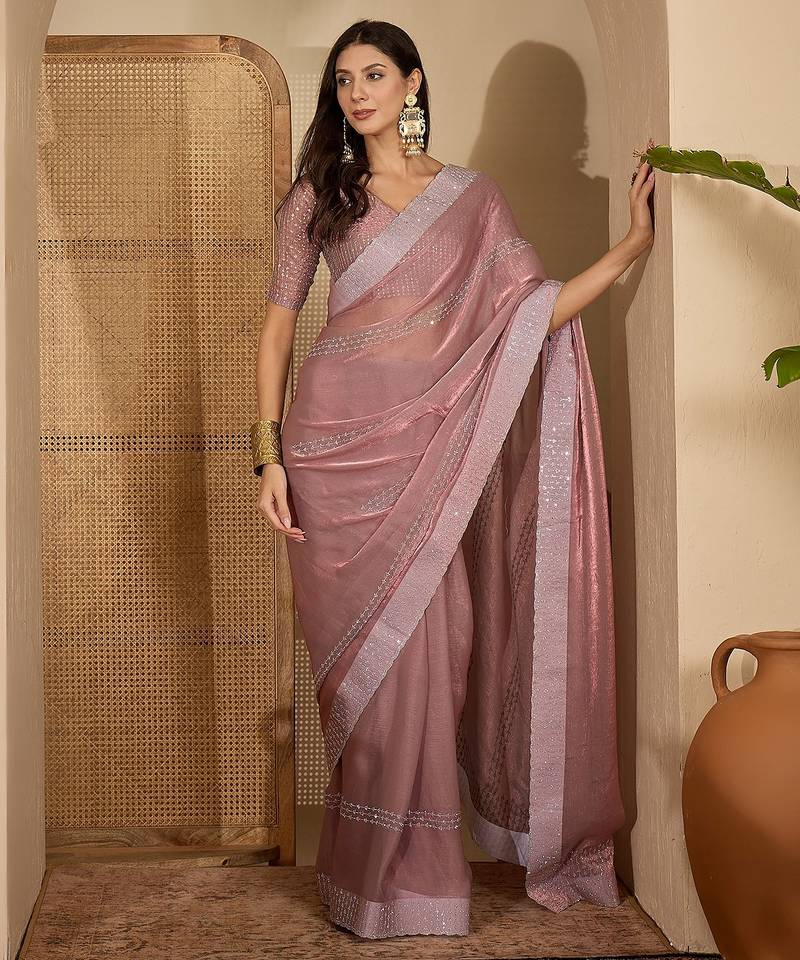Women's mauve silk blend chiffon embellished saree with unstitched blouse piece