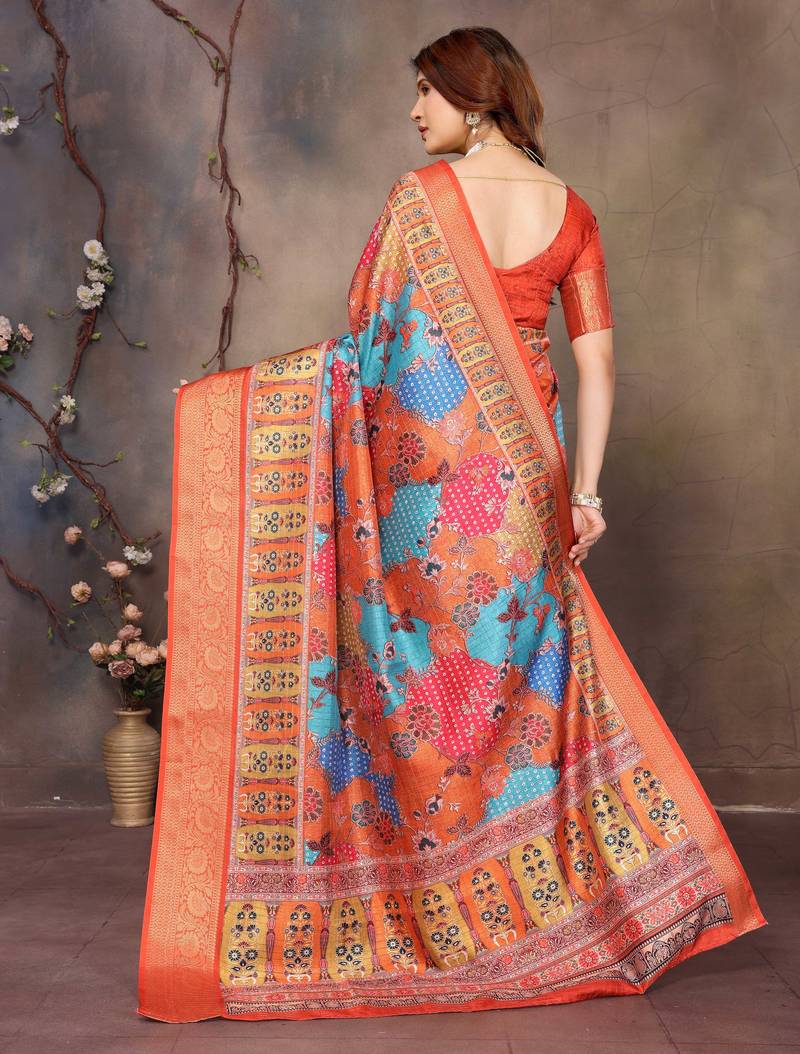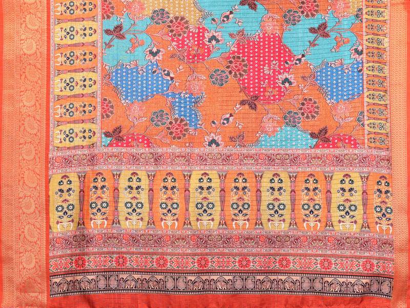 | Product Name | Women's Mustard Dola Silk Blend Digital Print Saree With Unstitched Blouse Piece | |