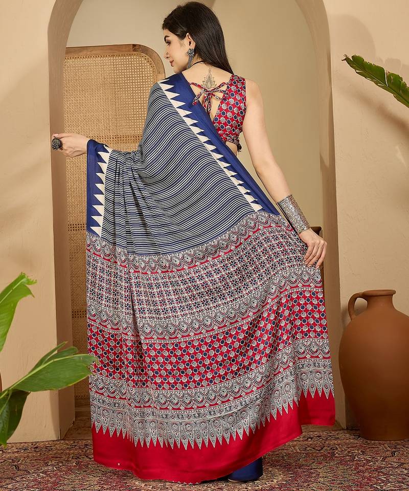 | Product Name | Women's Navy Blue Satin Printed Saree With Unstitched Blouse Piece | |