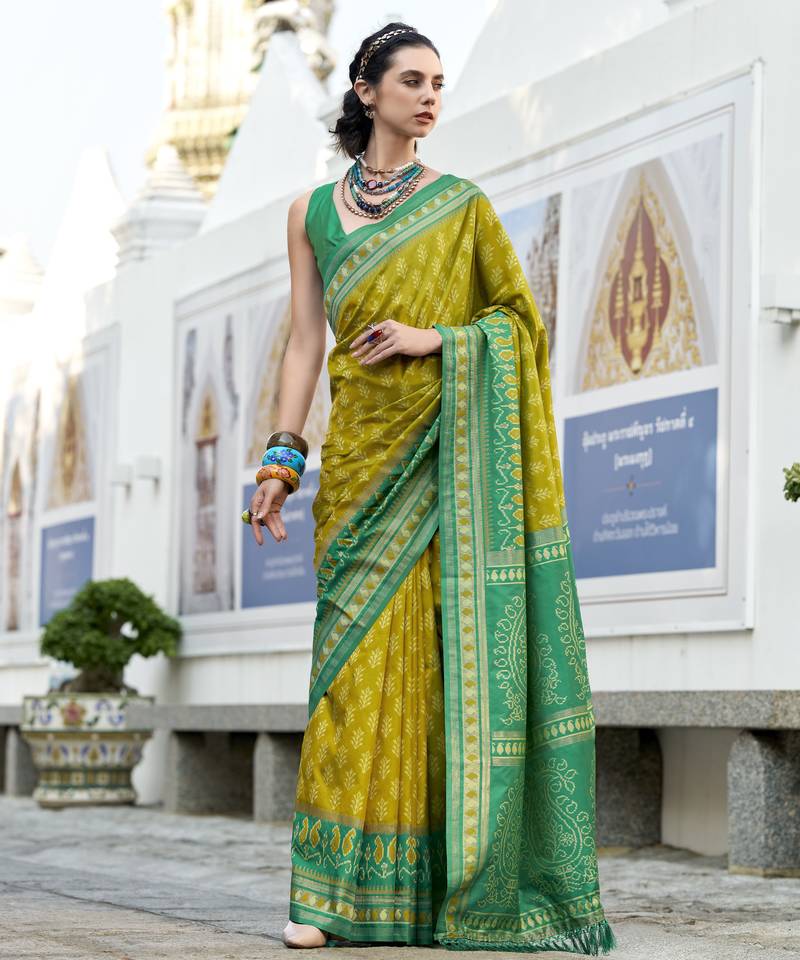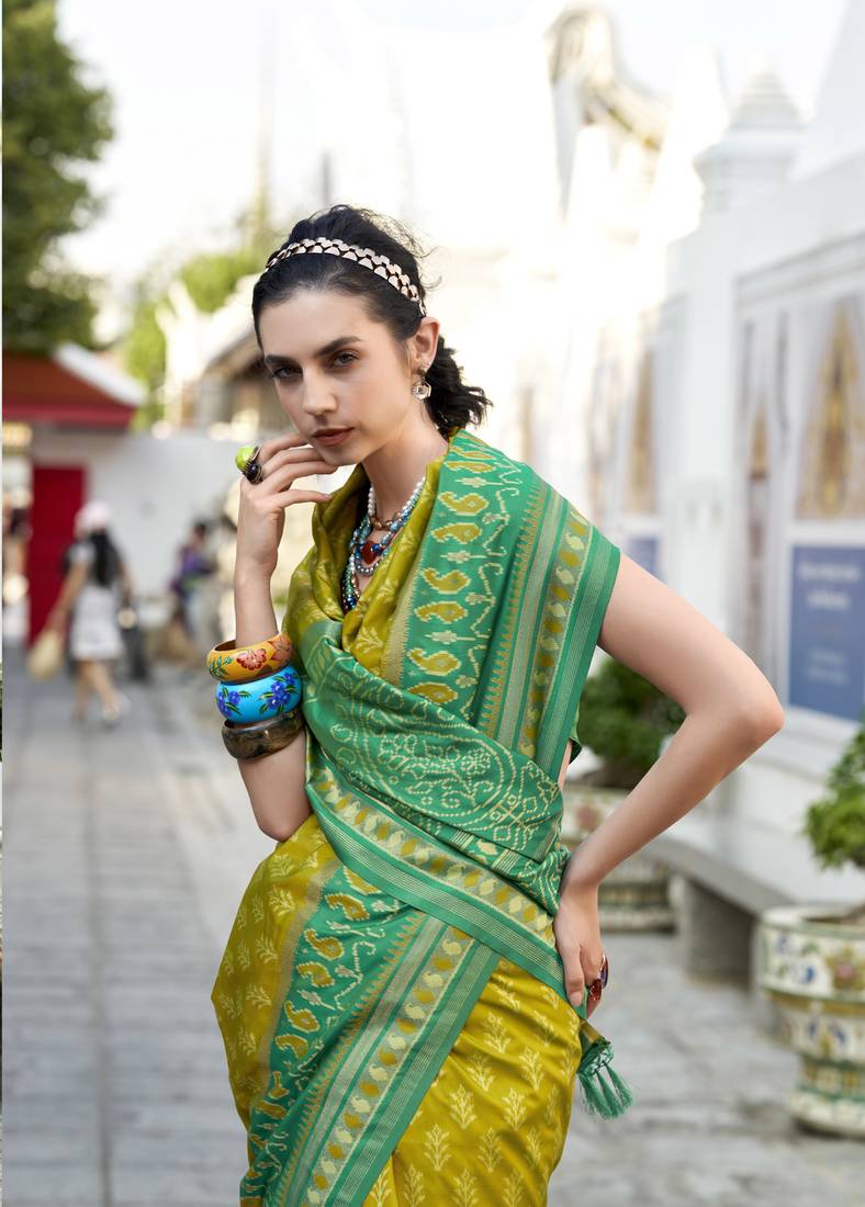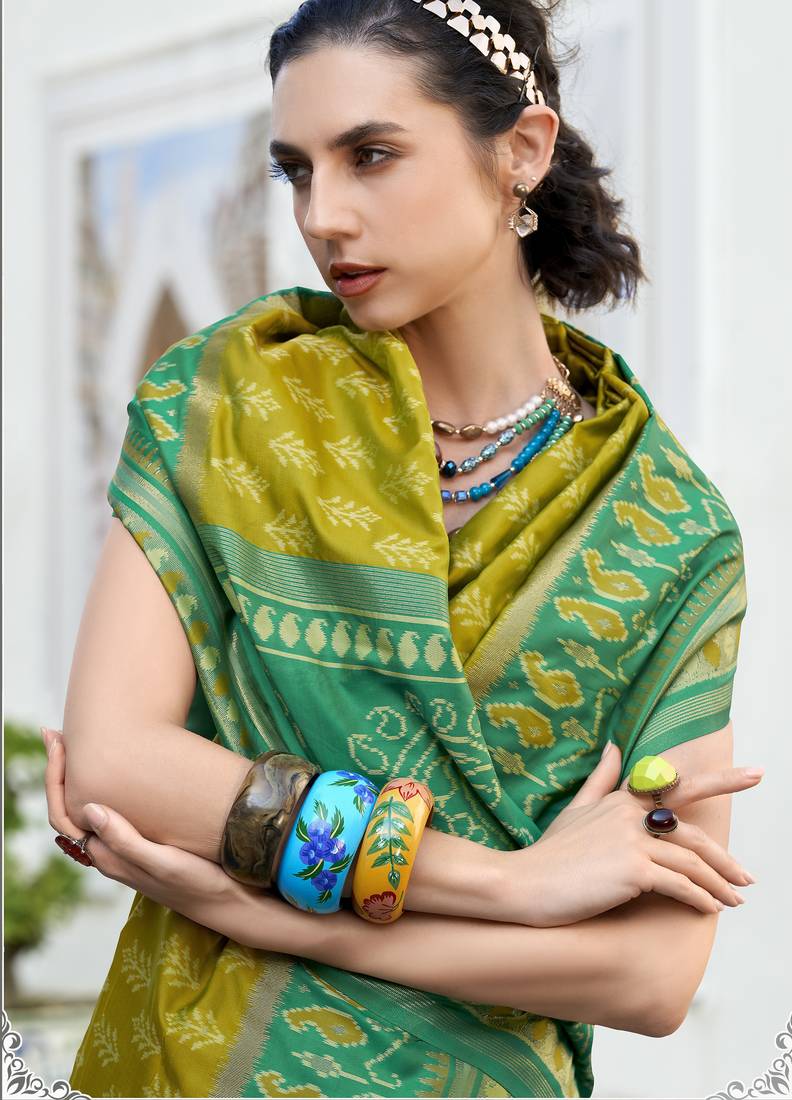 • | Saree | : | Color- Lime / Fabric- Silk Blend |