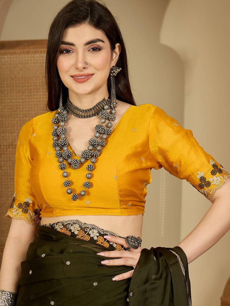 | Product Name | Women's Olive Chiffon Embroidered Saree With Unstitched Blouse Piece | |