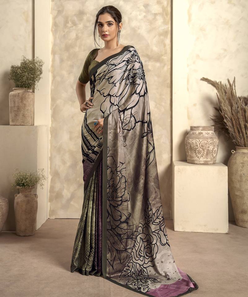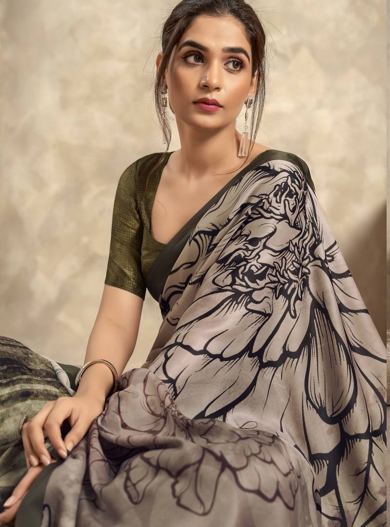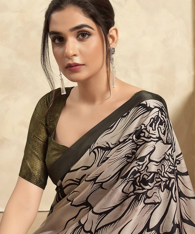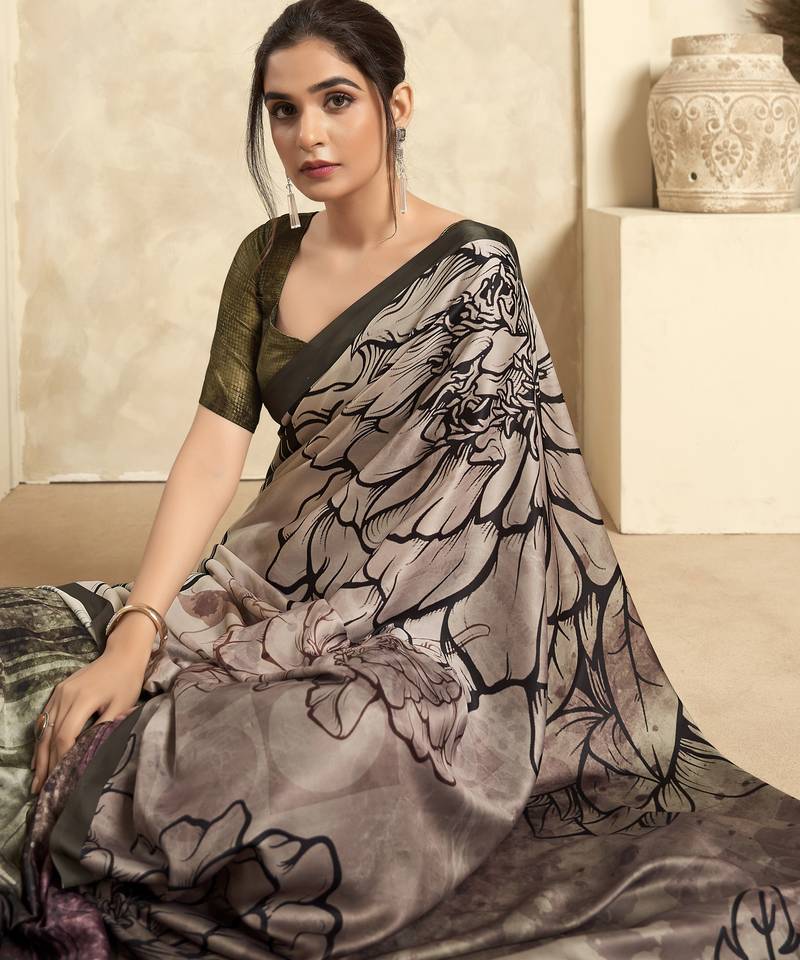 Product Name | Women's Olive Satin Crepe Printed Saree With Unstitched Silk Blouse Piece | |