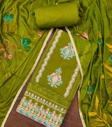 Women's parrot green premium roman cotton embroidered unstitched dress material