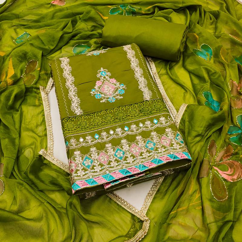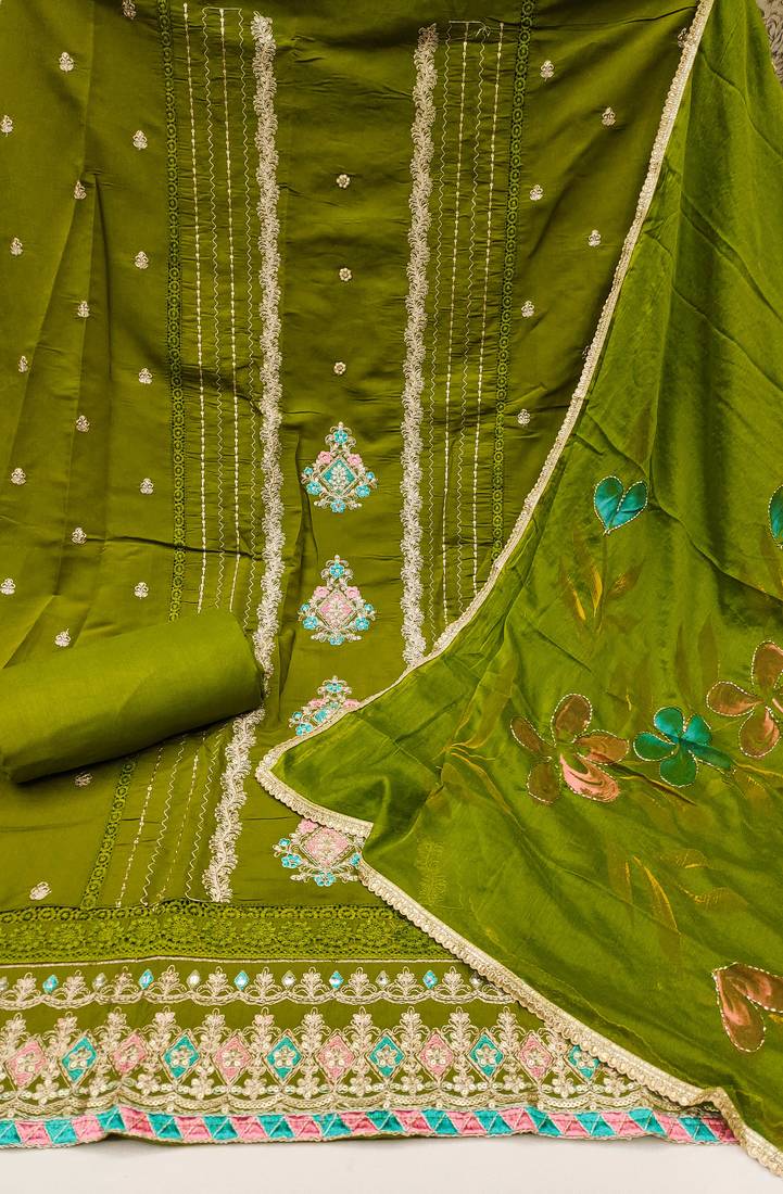 Product Name | Women's Parrot Green Premium Roman Cotton Embroidered Unstitched Dress Material | |