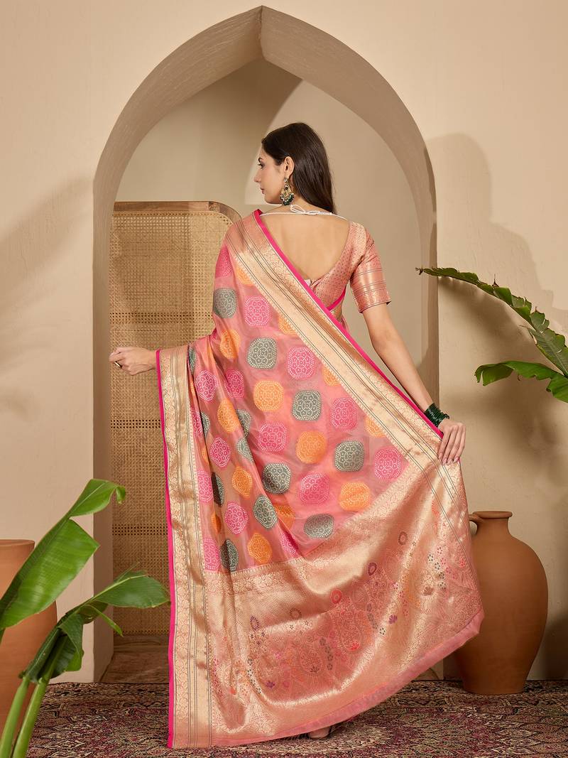 | Product Name | Women's Peach Organza Zari Woven Saree With Unstitched Blouse Piece | |
