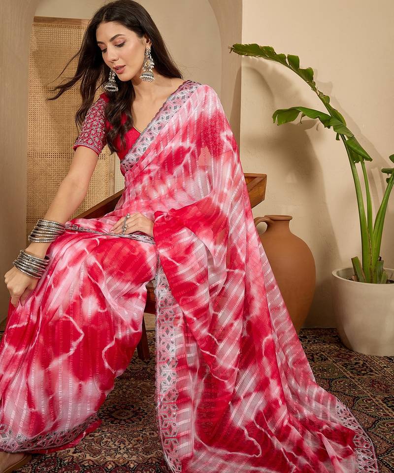 | Product Name | Women's Pink Chiffon Embellished Saree With Unstitched Blouse Piece | |