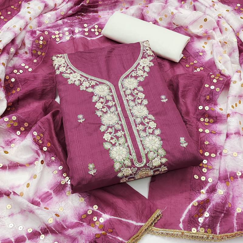 | Product Name | Women's Pink Coco Silk Embroidered Unstitched Dress Material | |